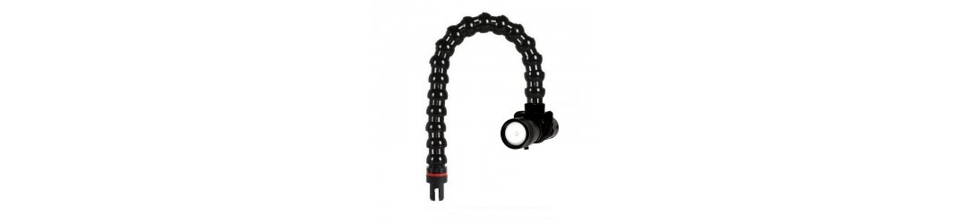 Flexible Arme mit Adapter Unterstützung Taschenlampen erlaubt die Montage von Taschenlampen in zylindrischer Form, Durchmesser von 2 bis 5 cm.