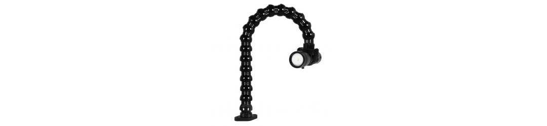 Der flexible Arm mit universellem Lampenadapter ermöglicht die Montage von zylindrischen Taschenlampen mit einem Durchmesser von 2 bis 5 cm