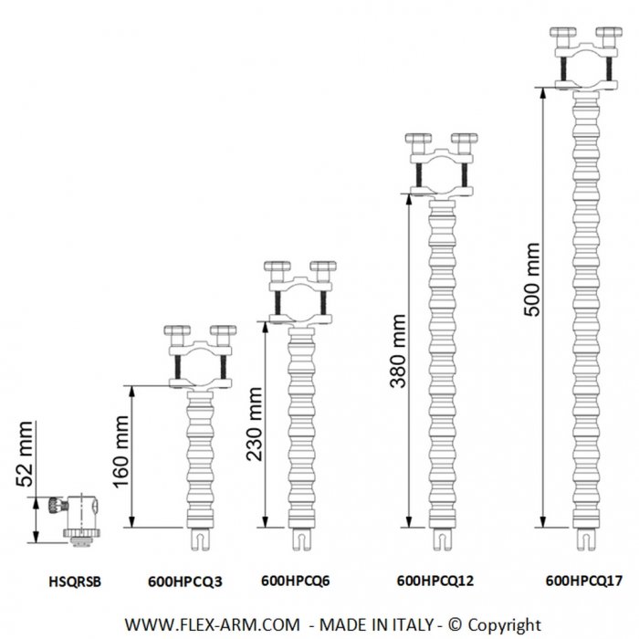 Cold Shoe mit Schnellverschluss von FlexArm und Schlauchklemme Lange 26 cm
