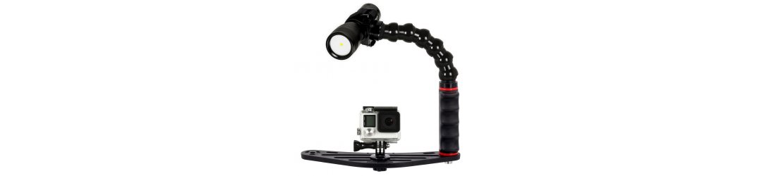 Ergonomischer Griff für Unterwasser Tray Kameraschiene, Ultraleicht, mit Umspritzte Gewindeeinsätze und Anti-Ausschraubsystem. Flexarm und Adapter Unterstützung Taschenlampen, erlaubt die Montage von Taschenlampen in zylindrischer Form, Durchmesser von 2 bis 5 cm.