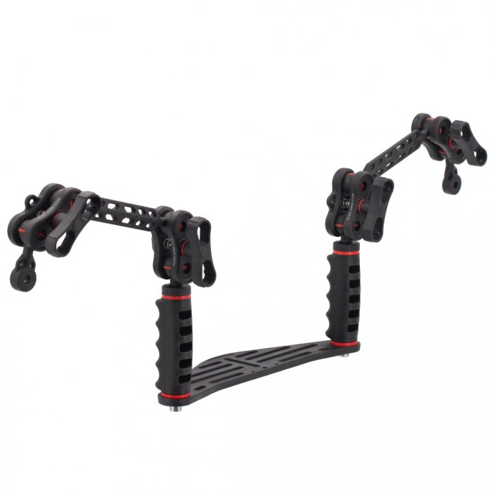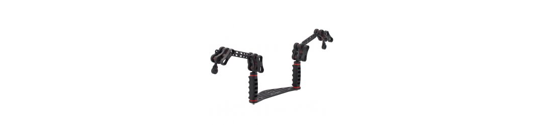 Kameraschiene für Unterwassergehäuse mit Doppelgriff und Kugel 25 mm und Ys-Bj Adapter mit Kugel 25 mm