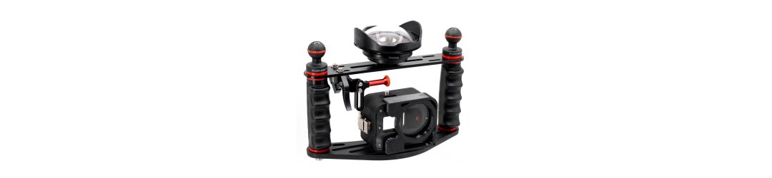 Unterwasser Tray schiene für Actioncameras mit Ergonomischer Handgriff , Ultraleicht, mit Umspritzte Gewindeeinsätze und Anti-Ausschraubsystem.