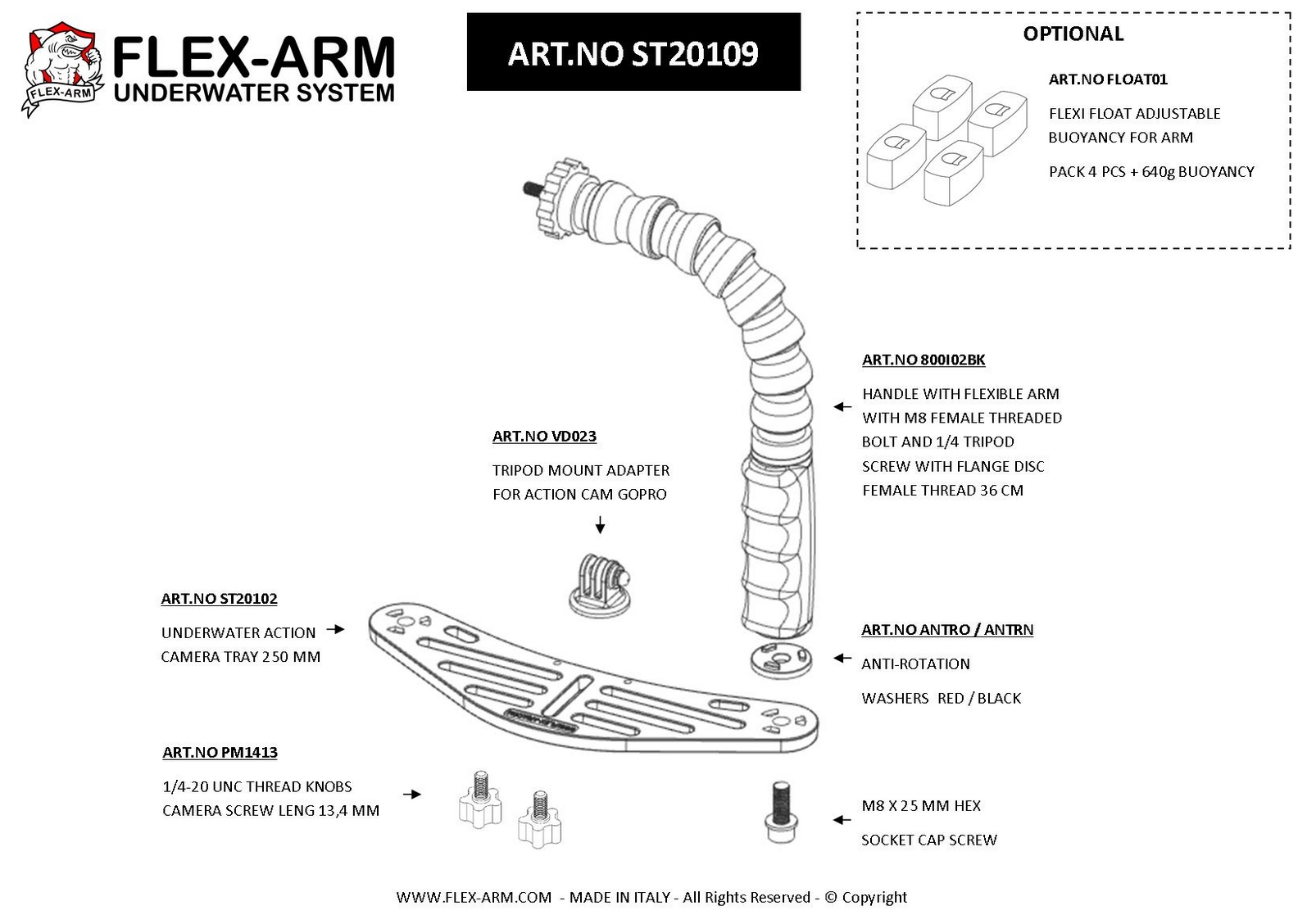 n.1 Unterwasser tray schiene für action-kameras  (Art.no.st201.02)
