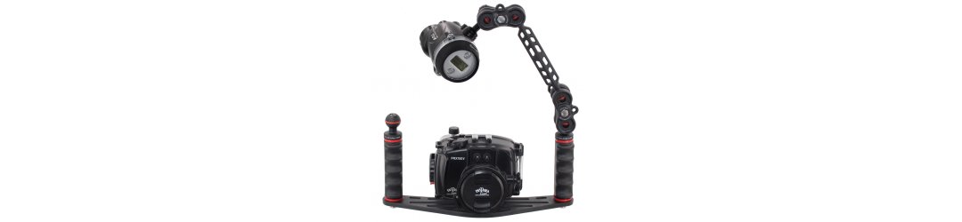 1- Kameraschiene für unterwassergehäuse mit doppelgriff und kugel 25 mm Art.no st202.04