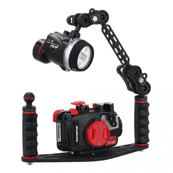 Kameraschiene für Unterwassergehäuse Set AOI Unterwasserblitz Ultra Compact Strobe Q1RC und Lichtleiterkabel Optisches