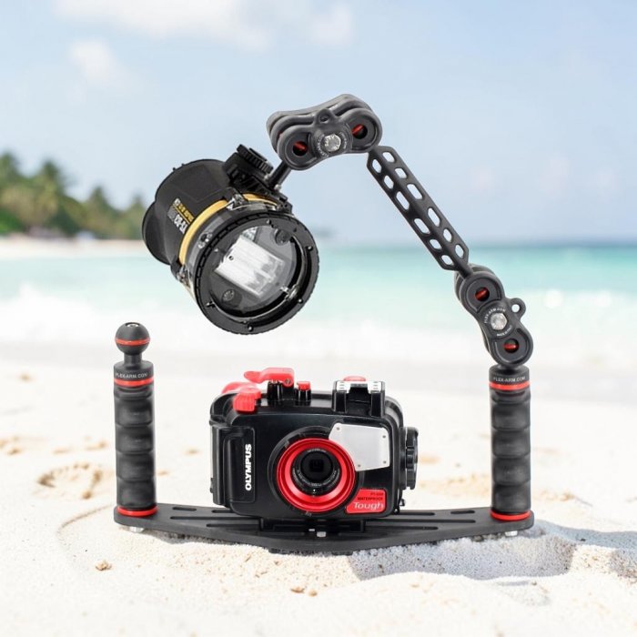 Kameraschiene für Unterwassergehäuse mit Doppelgriff und Kugel 25 mm und Ys-Bj Adapter mit Kugel