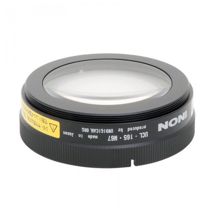 Dier INON UCL-165 M67 Close-up Lens ist ein Nassdiopter und kann unter Wasser vor die Kamera geschraubt werden. Sie passt auf ein M67 Gewinde und vergrößert den Bildausschnitt durch reduzierung der minimalen Fokus-Distanz.