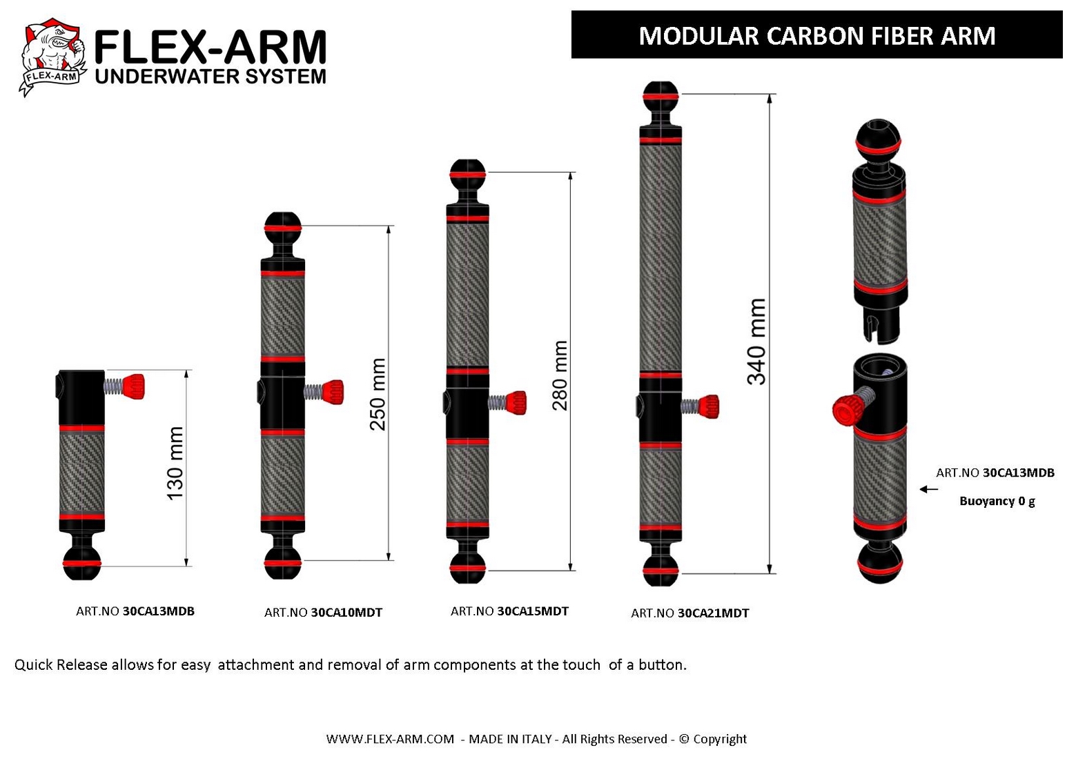 Modular Carbon Float Arm 30 mm with Quick Release Base and 1-Inch Ball Leng 130 mm