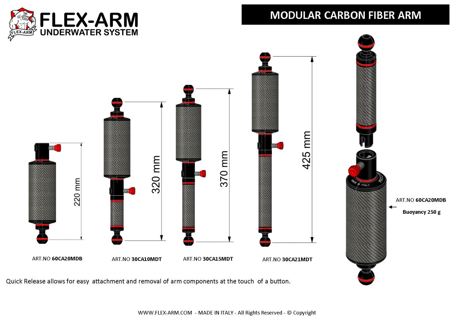 Modular Carbon Float Arm 60 mm with Quick Release Base and 1-Inch Ball Buoyancy 250 g