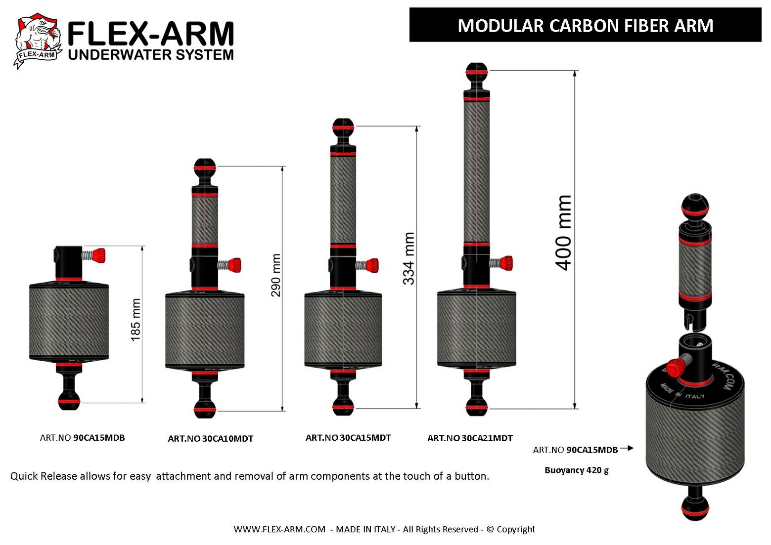 Modular Carbon Float Arm 90 mm with Quick Release Base and 1-Inch Ball Buoyancy 420 g