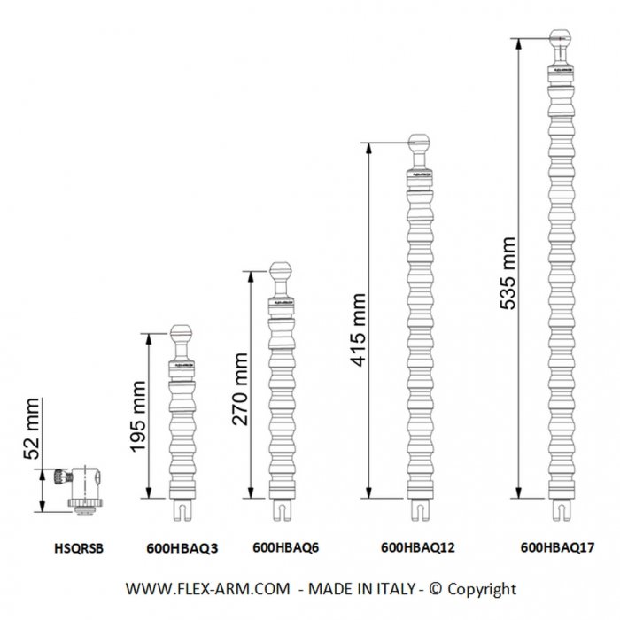 Cold Shoe with Quick Release and Flex Arm 1-Inch Ball 25 mm Length 26 cm