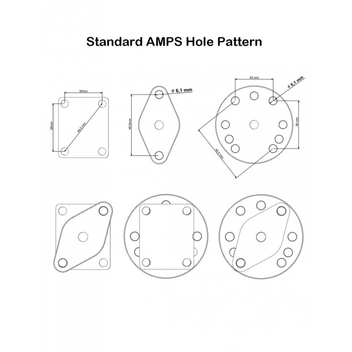 The AMPS model is an industry standard mount used in various applications for mounting devices and device mounts, such as GPS, tablet, smartphone, action camera, satellite radio and many other products.
