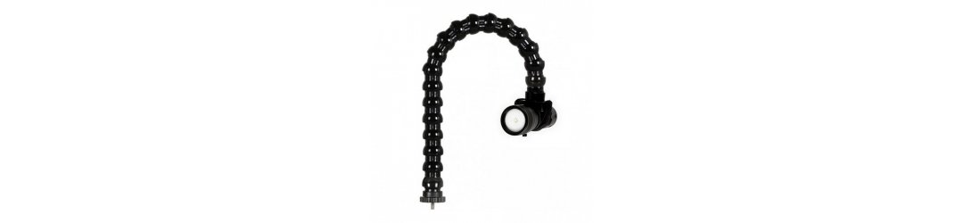 The flexible arm with universal lights adapter, allows the mounting of cylindrical torches with diameters ranging from 2 to 5 cm