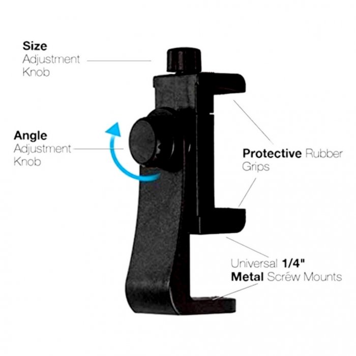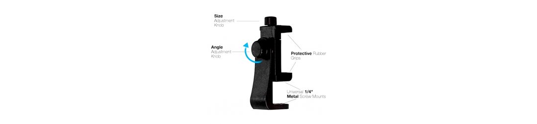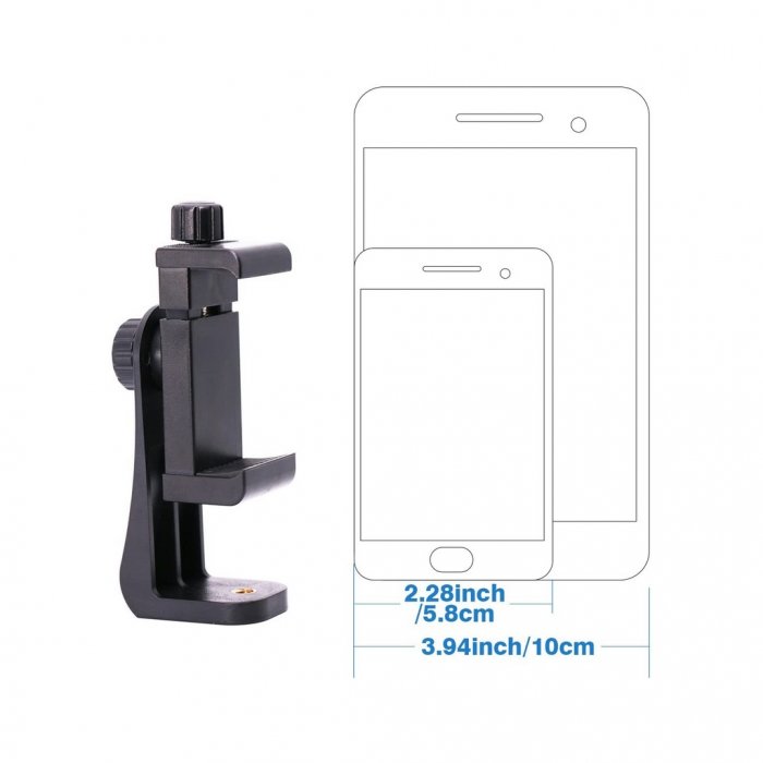 Adjustable width: 2.2inch-4.1inch(55mm-105mm), attachable to any regular-size smartphone, tripod, selfie stick, monopod or camera; two standard 1/4 x 20mm female thread interfaces meeting your various needs. Very functional and compact.