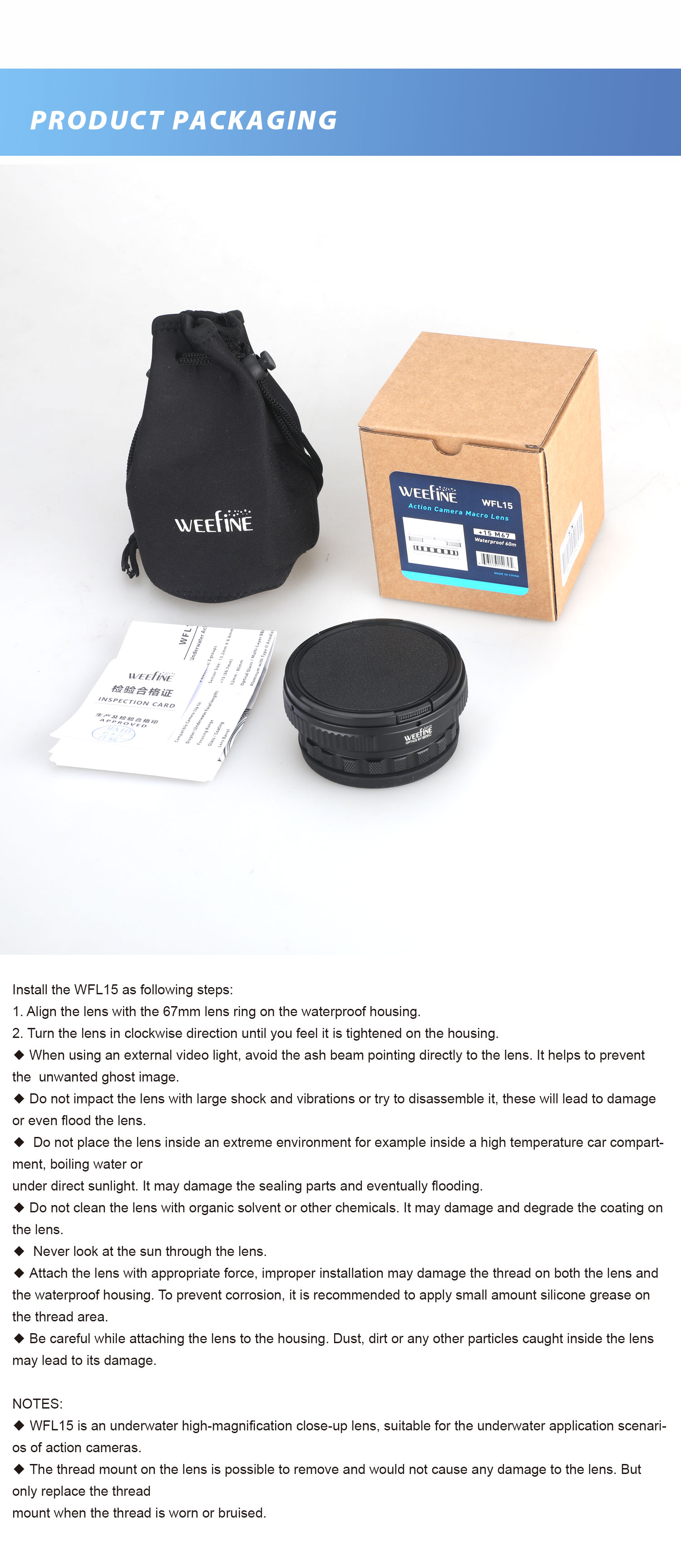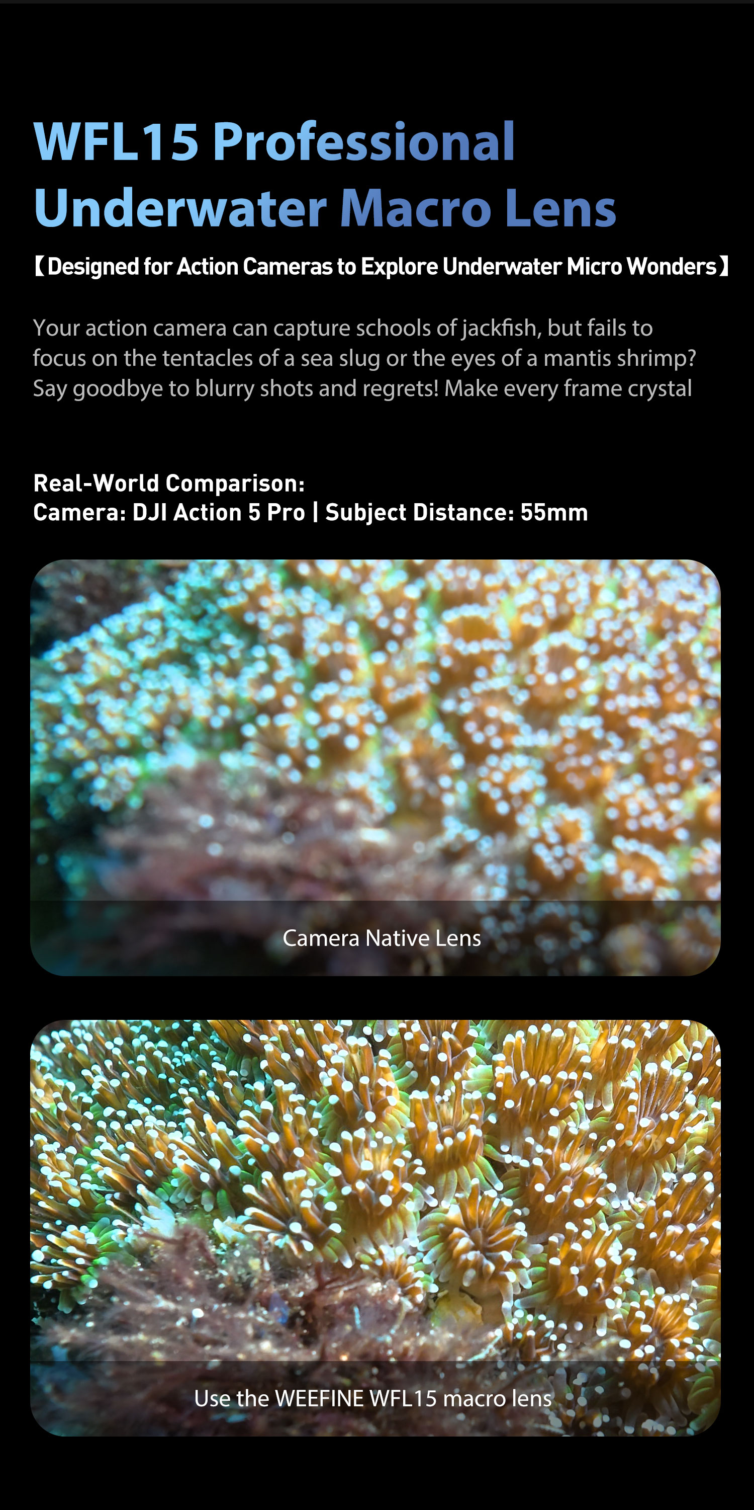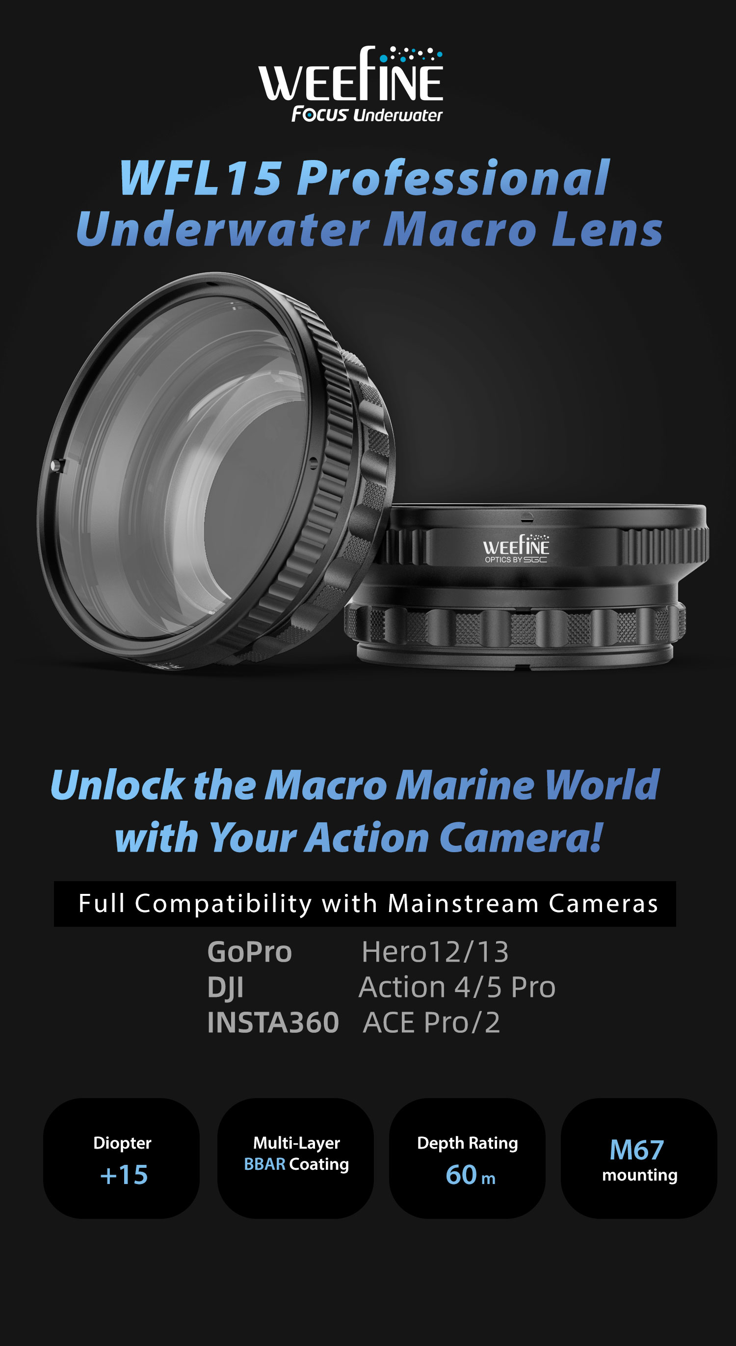 WeeFine Close-Up Wet Lens +15 with M67 for Action Camera