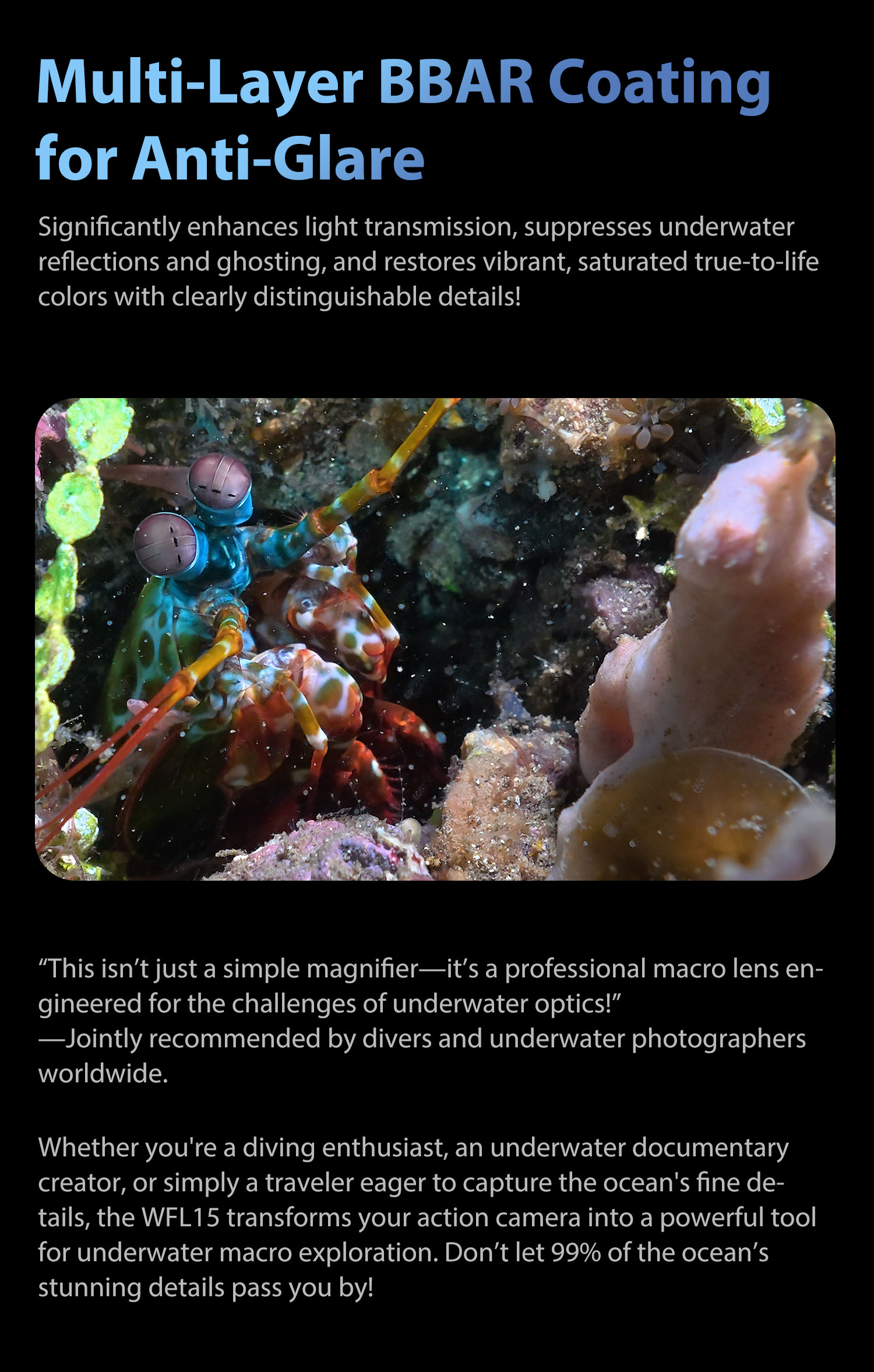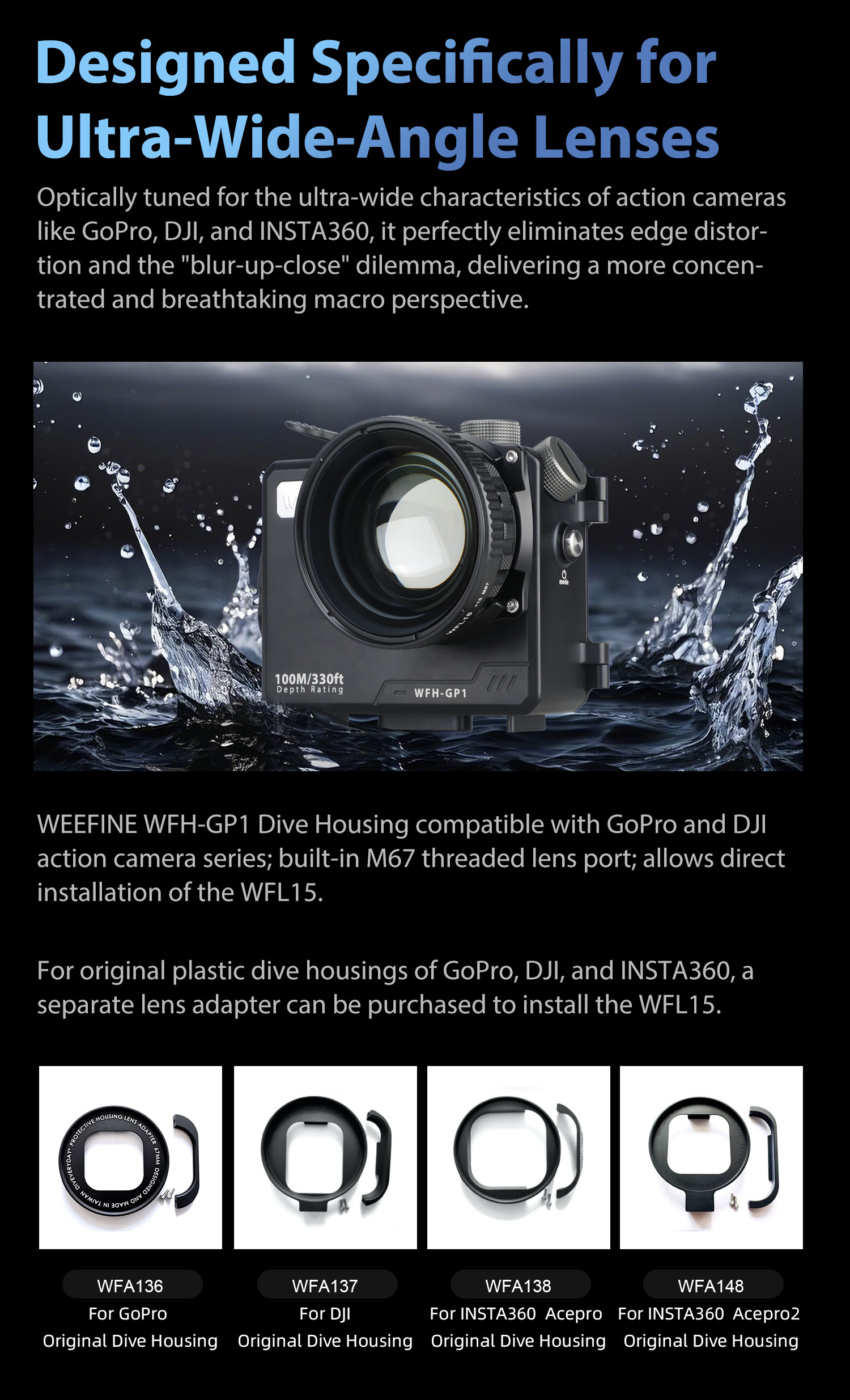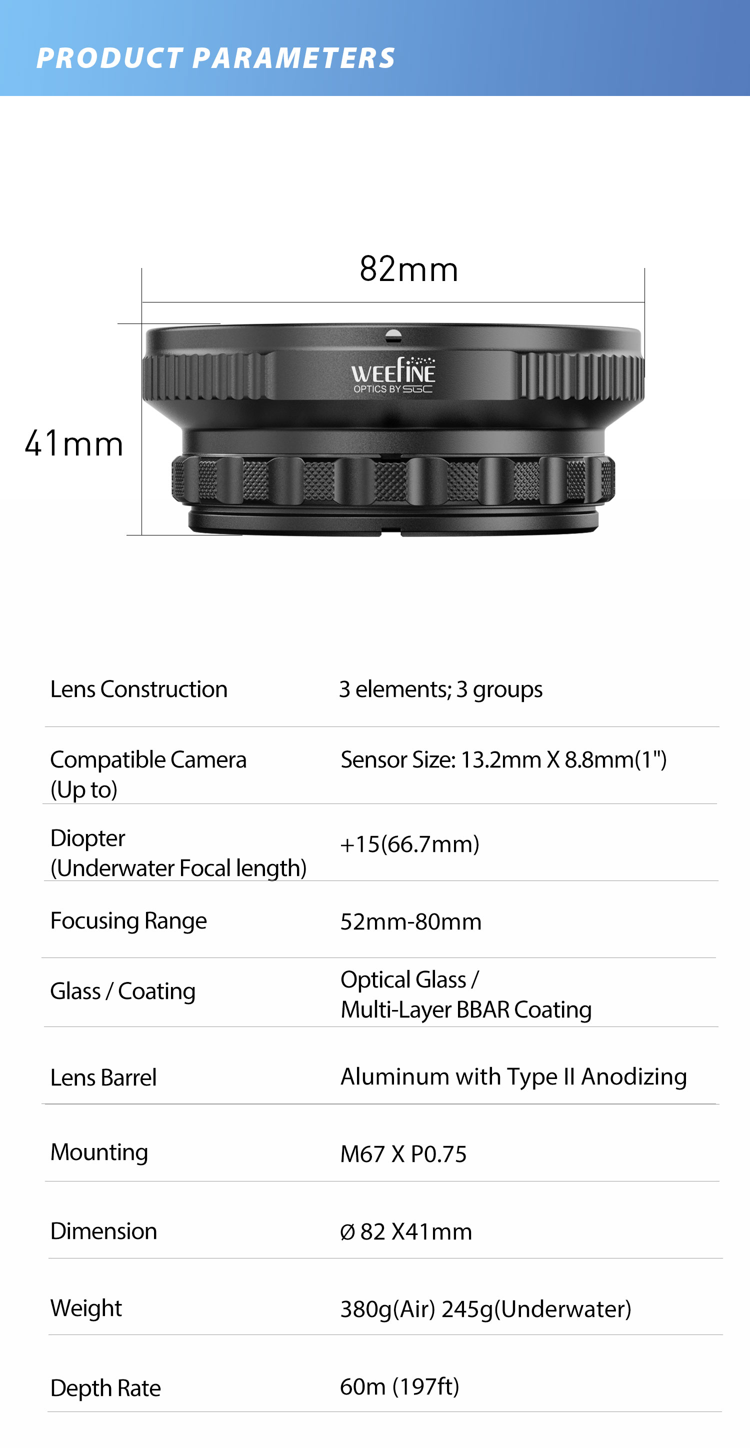 WeeFine Close-Up Wet Lens +15 with M67 for Action Camera