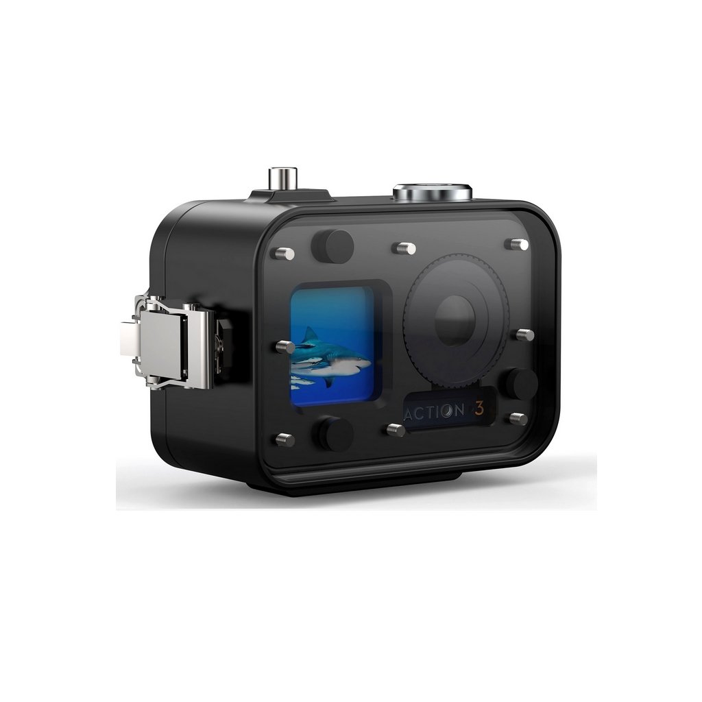 Attachment via two 1/4″ camera threads on the housing base. If you need a GoPro-compatible attachment option, there is an appropriate adapter, which must be ordered separately.