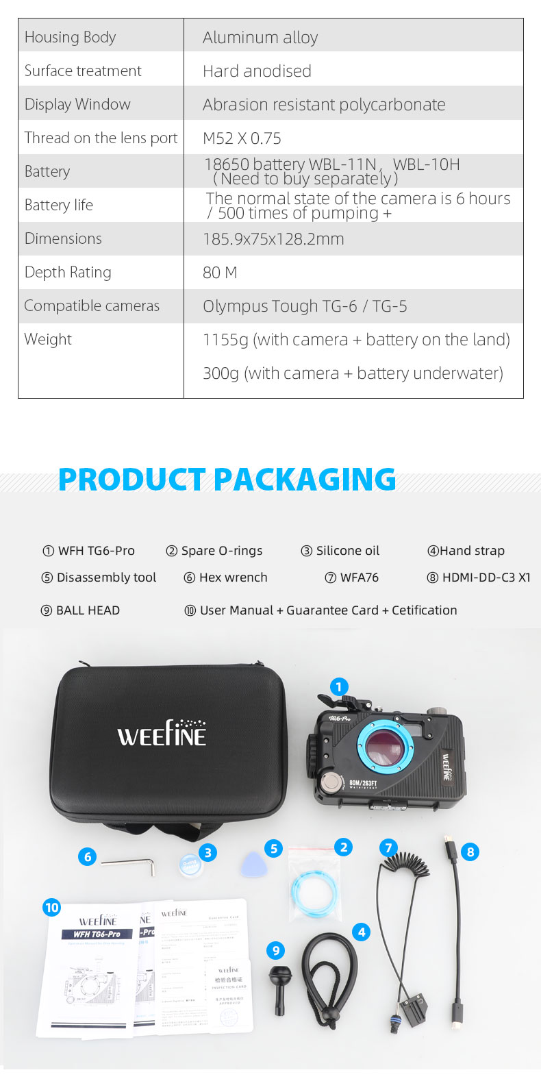 Weefine Underwater Housing for Olympus TG6 - TG7