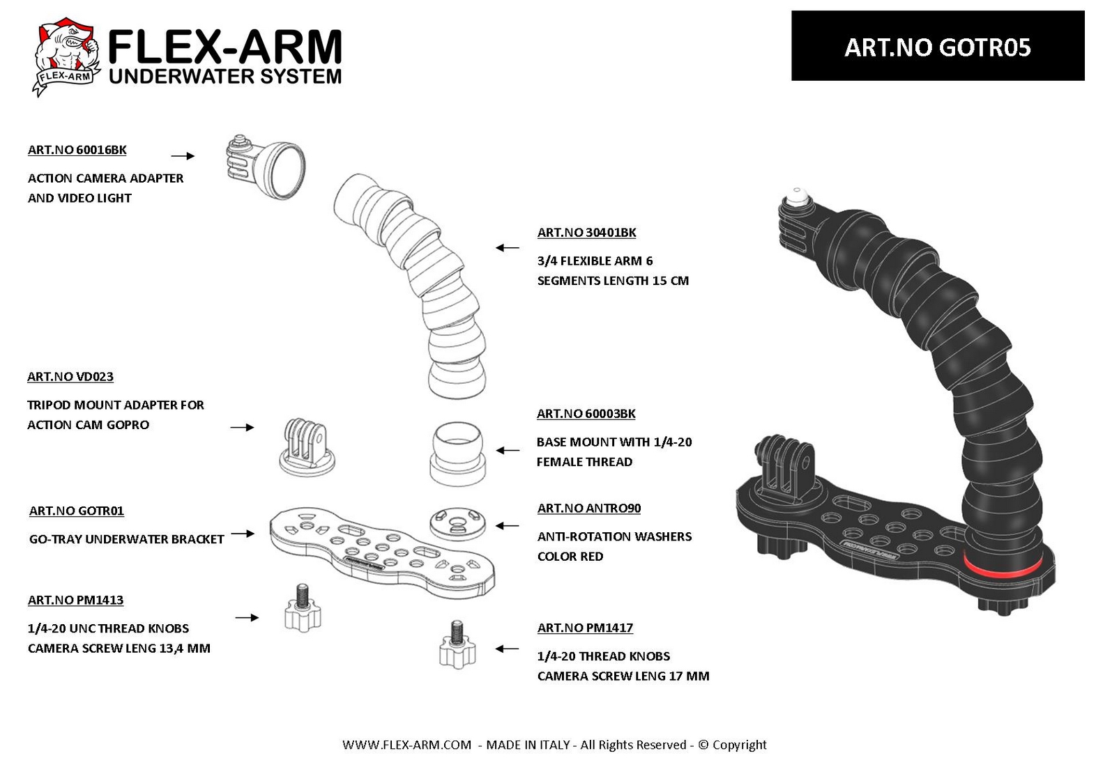 GO-TRAY Underwater Bracket With 3/4 Flex Arm Adapter for Qudos