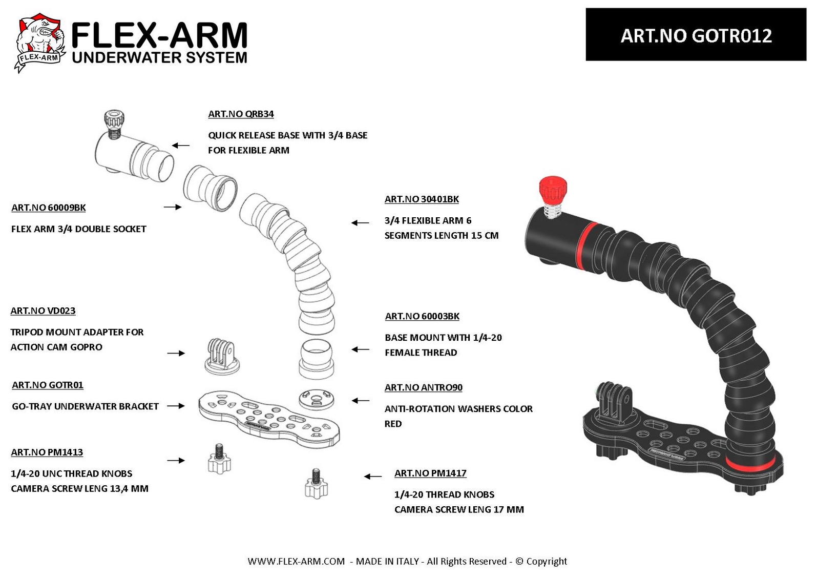GO-TRAY Underwater Bracket With 3/4 Flex Arm and Quick Release