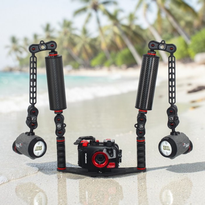Underwater Camera Housing Tray and Ergonomic Handles with Ball Joint 25 mm (1")