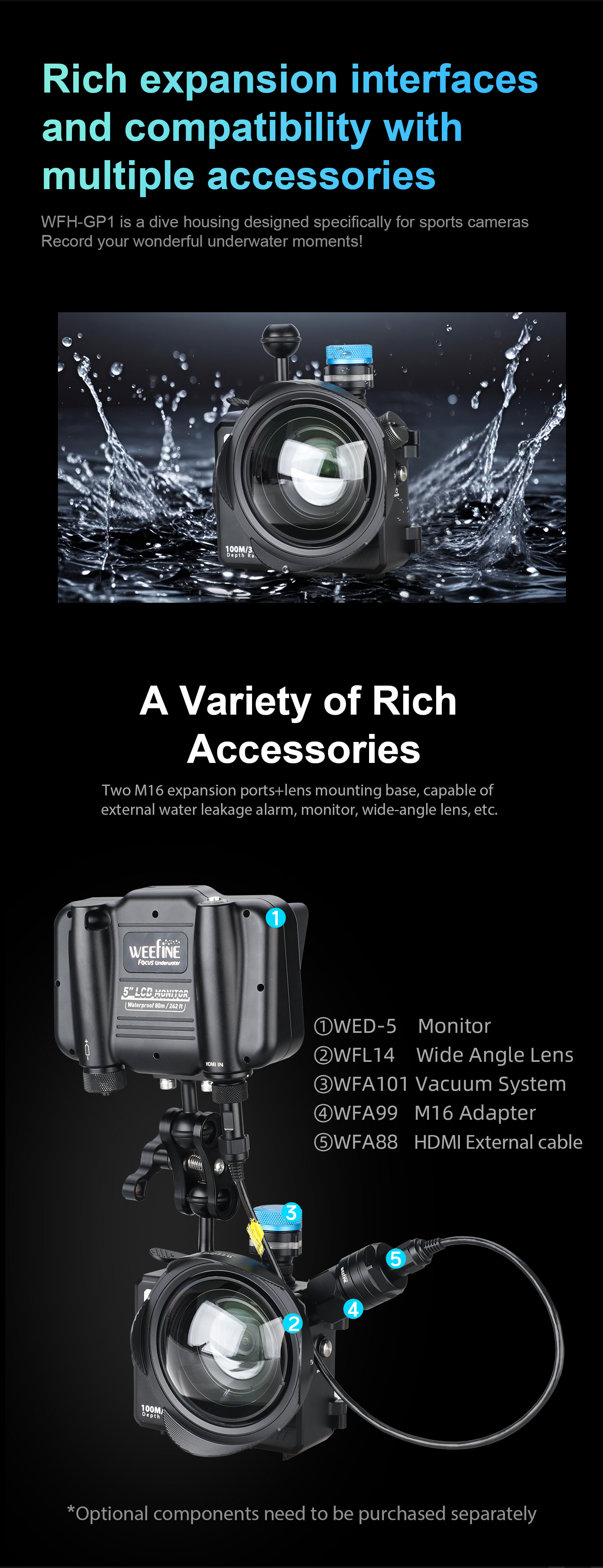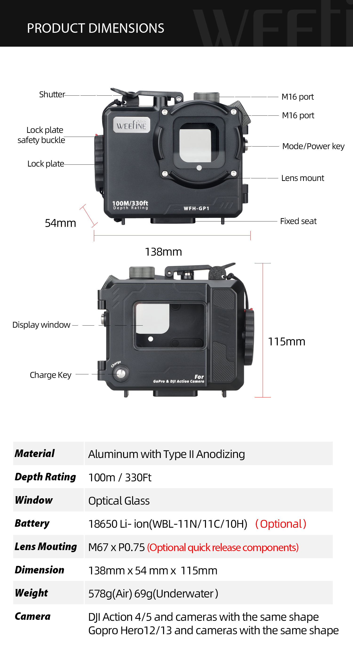 Universal Underwater Housing Action Camera GoPro - DJI Action Weefine