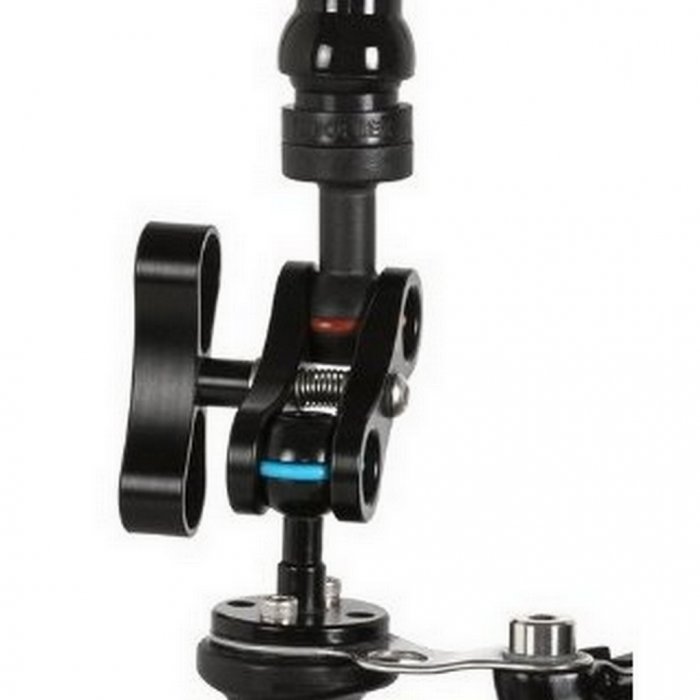El brazo bola de 25 mm de diámetro es el estándar en fotografía subacuática.