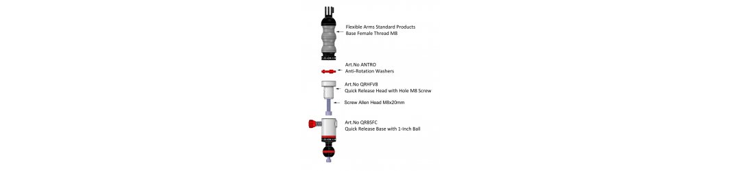 Brazo Flexible Zafado Rápido Bola 25 mm con Soporte Action Camera para GoPro
