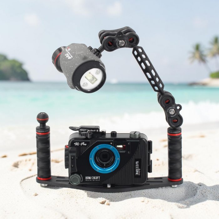 Cámara Olympus OM System TG-7 + Carcasa Weefine WFH-TG PRO + Flash AOI Q1i Pack Foto Submarina