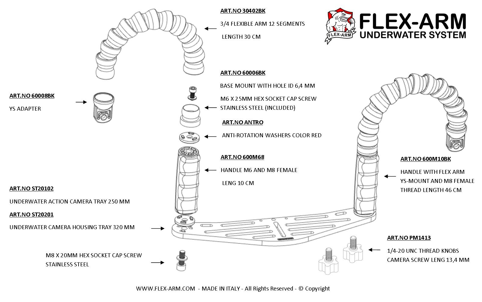 Brazo flexible con adaptador ys para focos y flashes submarinos. Adaptador ys compatible con: Sea&Sea, Inon, Weefine, Supe, Epoque