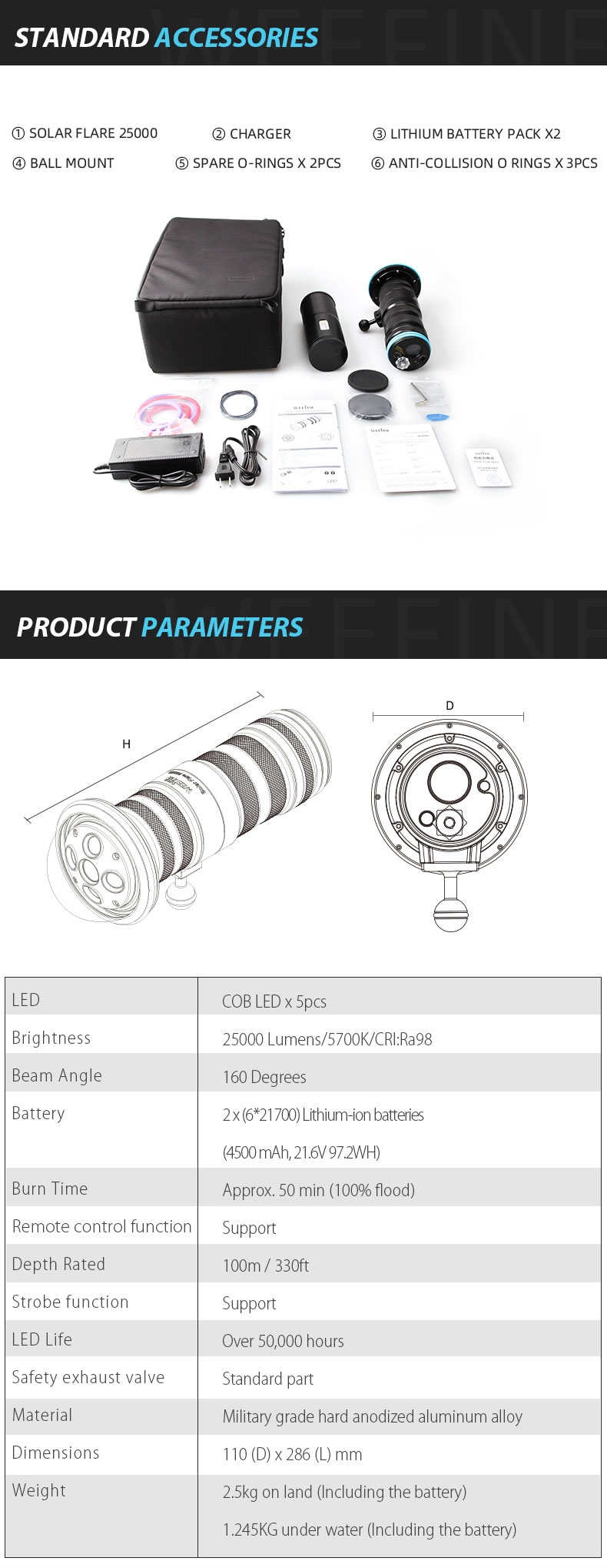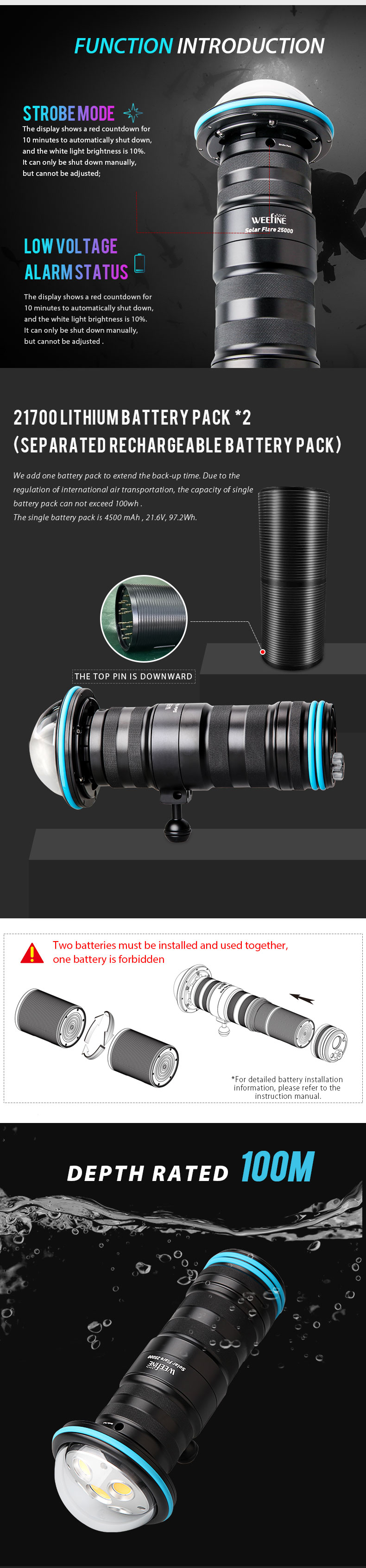 En el modo estroboscópico, la linterna de buceo entra automáticamente en modo de espera con un valor de brillo bajo, ya sea que esté tomando fotos o no. Para que la batería de la linterna de buceo se pueda quemar durante mucho tiempo.