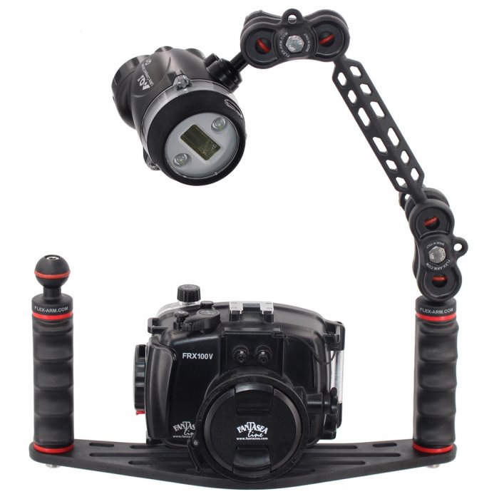 Pletina para Carcasas Submarinas con Doble Puño Bola 25 mm y Brazo 18 cm con Bola para Flash AOI Ultra Compact Strobe Q1