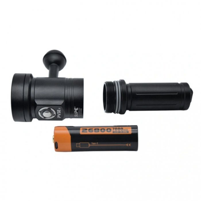La Scubalamp PV32 v2 es una increíble linterna para foto/video con luces blancas, rojas y azules (ultravioleta). Esta vez, hemos integrado numerosas funciones en un diseño muy compacto. Para empezar, contamos con una impresionante luz blanca de 3000 lúmenes con un haz de 100 grados muy amplio y uniforme para cubrir todas tus necesidades de iluminación para video y foto. Además, incluimos LED rojos, rosas y morados (420 nm) para lograr ese efecto ultravioleta. Esto hará que los corales brillen como nunca antes y, por último, un haz de luz puntual de 1000 lúmenes, para que esta linterna te cubra sin importar lo que estés fotografiando.