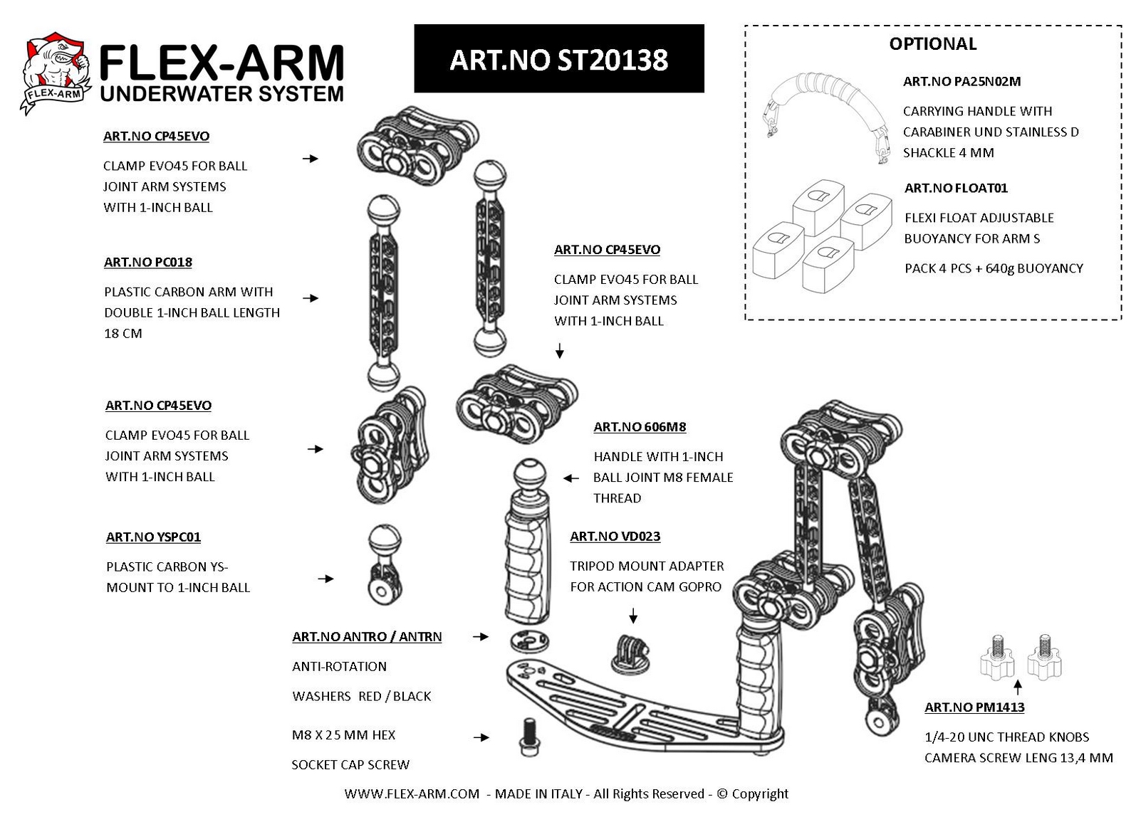 N.1 Pletina Universal para Action Cam 260 x 60 x h 8 mm Art.No.St201.02