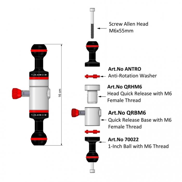 Bras Quick Release à Dégagement Rapide Double Boule 25 mm