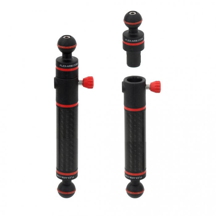 Bras en Fibre de Carbone à Dégagement Rapide Double Boule 25 mm Long 24 cm
