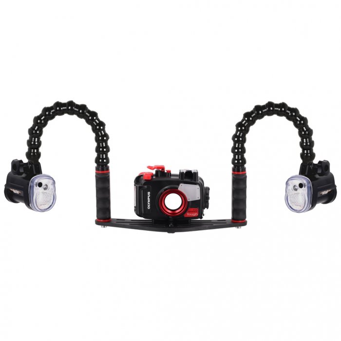Poignée ergonomique avec bras flexible et terminaison YS pour fixation des flashs et éclairages photo-vidéo plongée sous-marine