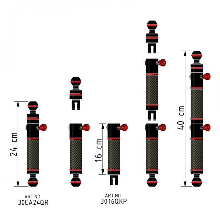 Extension Bras en Carbone à Dégagement Rapide Long 16 cm