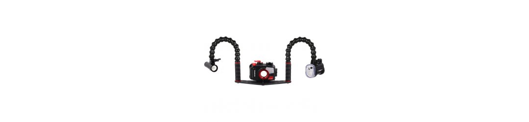 Poignée avec bras flexible et terminaison YS pour fixation des flashs et éclairages photo-vidéo plongée sous-marine
