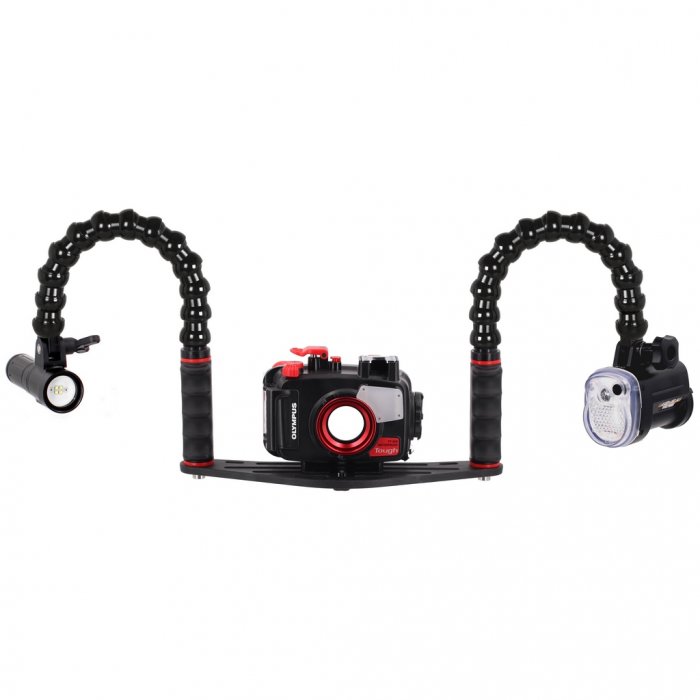 Pack Platine pour caisson photo avec Flash Sea and Sea YS-03 et Câble Fibre Optique Lampe Vidéo SCUBALAMP PV22 2000 LUMENS