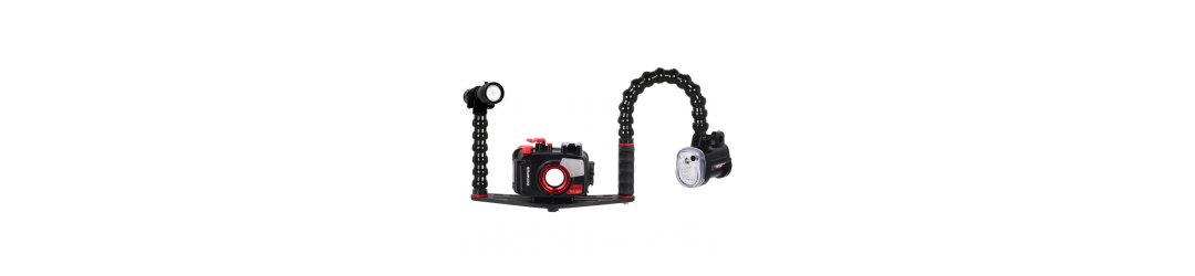 Poignée avec bras flexible et terminaison YS pour fixation des flashs et éclairages photo-vidéo plongée sous-marine