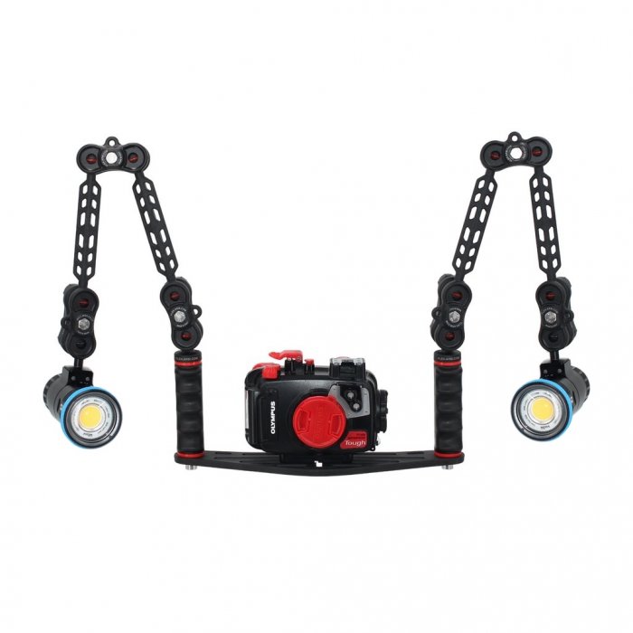 Platine universelle pour caisson photo sous-marine avec Poignée à Boule 25 mm, Pince de serrage , Bras Plastic Carbone Long 18 cm et terminaison ys