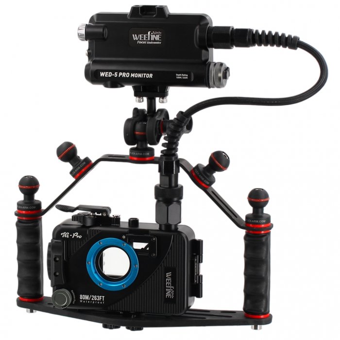 Platine Universelle pour Caisson Photo Sous-Marine avec poignées ergonomique, ultralégère, avec inserts filetés surmoulés et système anti-dévissage.