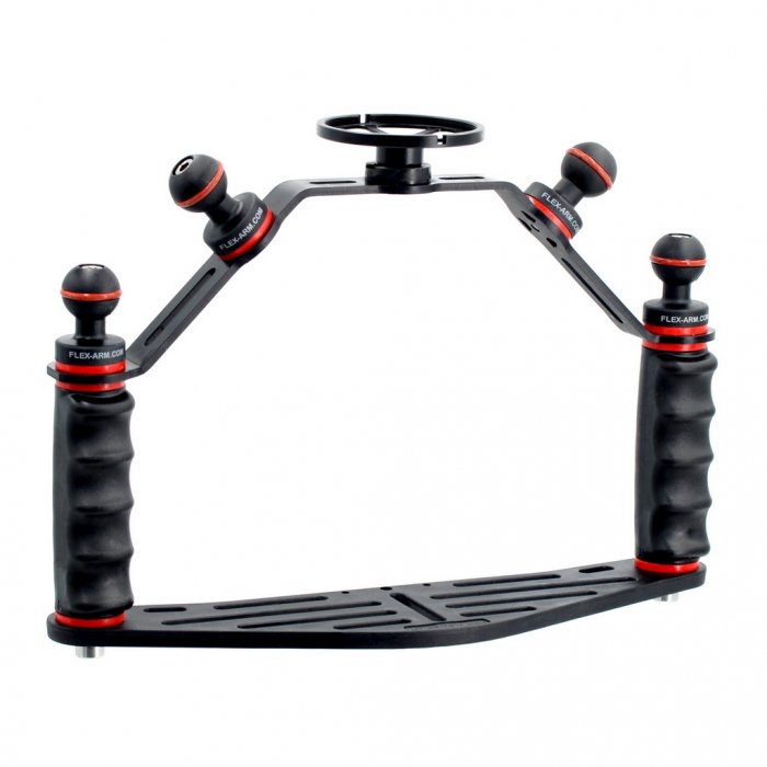 Platine Double Poignee pour Caisson Photo Sous-Marine avec Rotule 25 mm