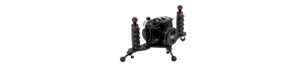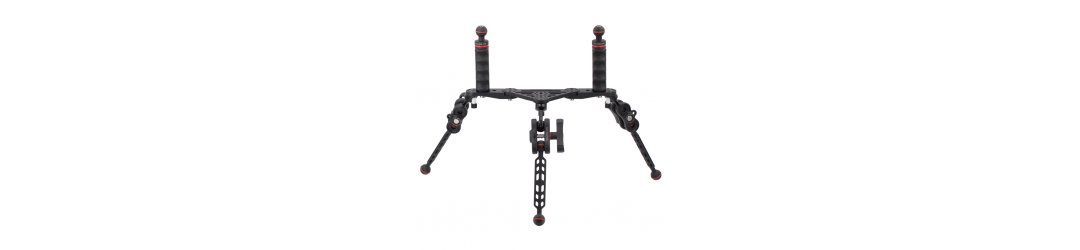 Les deux extensions amovibles peuvent être tournées de -90 à +45 degrés, retirant ou avançant ainsi les poignées par rapport au centre de la caméra, positions idéales pour les caméras vidéo sous-marines