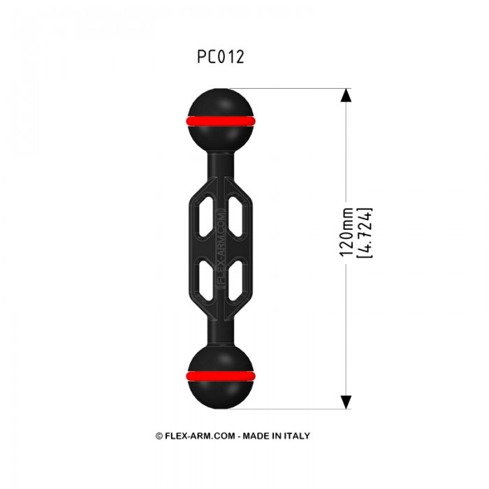 Braccio a sfera per il collegamento di flash o illuminatori per custodie subacquee e staffe per videocamera Il braccio a sfera da 25 mm di diametro è lo standard nella fotografia subacquea