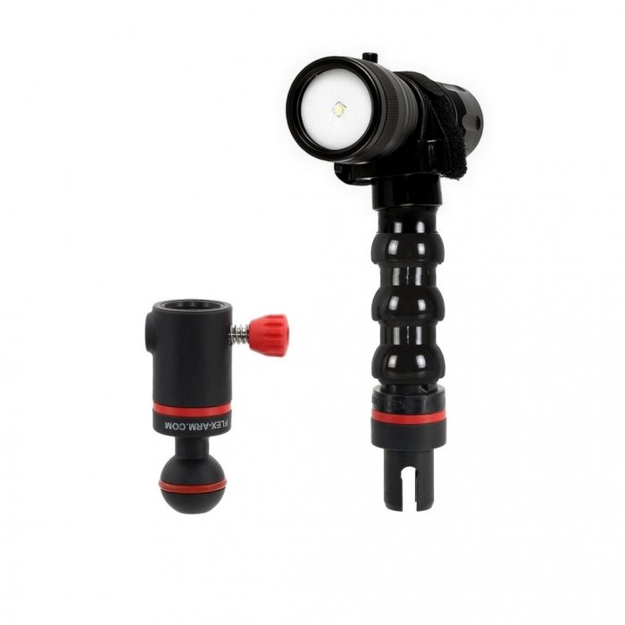 Il Braccio flessibili con terminale universale supporto torcia è compatibile con tutti gli illuminatori subacquei per il montaggio di torce cilindriche con diametri da 2 a 5 cm.
