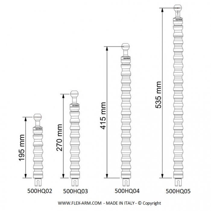 Il braccio flessibile può essere allungato e accorciato aggiungendo o rimuovendo i vari segmenti