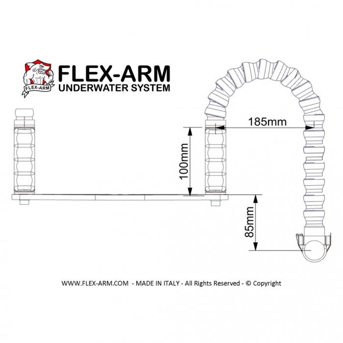 Impugnatura con braccio flessibile terminale supporto torcia universale per il montaggio di torce cilindriche con diametri da 2 a 5 cm.