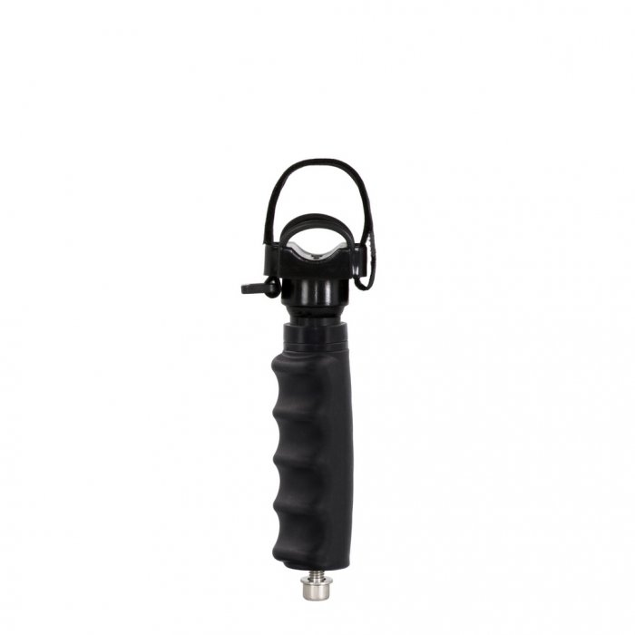 Impugnatura ergonomica per staffe subacquee, ultraleggera, con inserti filettati sovrastampati e sistema antisvitamento. Terminale supporto torcia universale per il montaggio di torce cilindriche con diametri da 2 a 5 cm.
